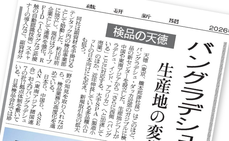 テンタックグループの新拠点に関する記事が掲載されました。(繊研新聞2026年2月17日付4面)