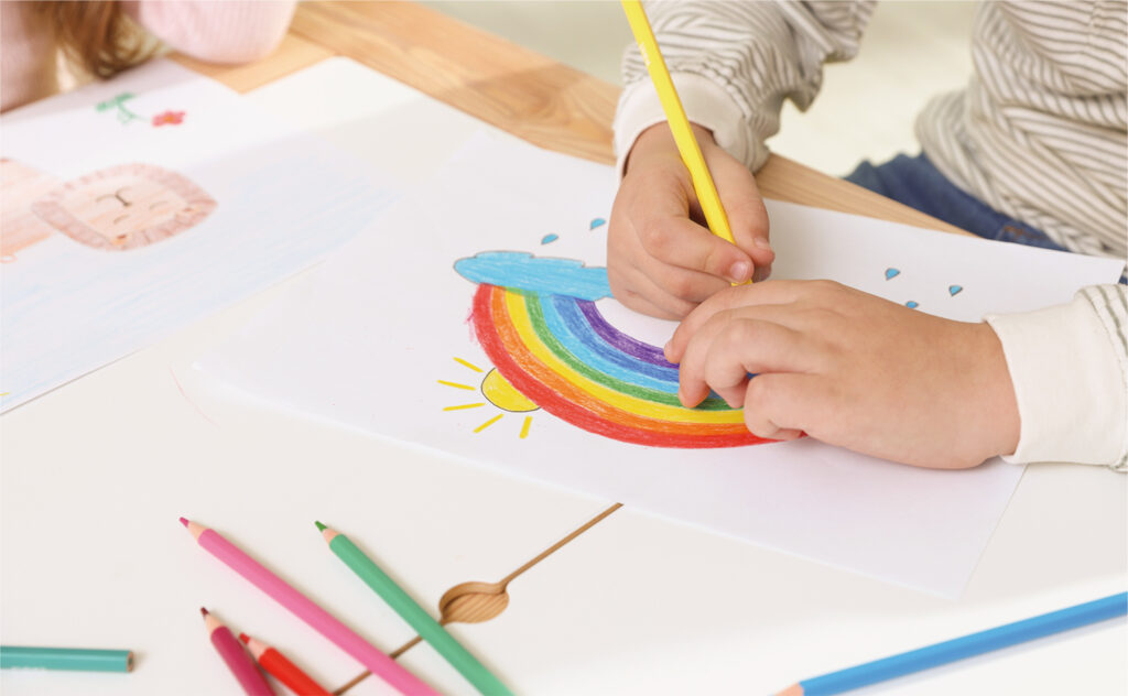 転写シートにあらかじめ輪郭だけのデザインを印刷し、ユーザーが色を塗って仕上げる体験型の手法です。